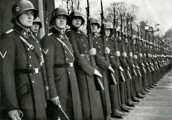 Цей шеврон у німецькій армії називався "Шеврон старого бійця", носити його мали право лише ті члени СС, які вступили до лав НСДАП у «період боротьби», тобто ще до того, як рейхспрезидент і генерал-фельдмаршал Пауль фон Гінденбург призначив Адольфа Гітлера німецьким рейхсканцлером 30 січня 1933 року